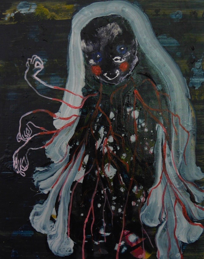 Human Plant/Ihmiskasvi 2019, Acrylic and spray on canvas/Akryyli ja spray kankaalle, 41×33 cm Tykkää Lataa...