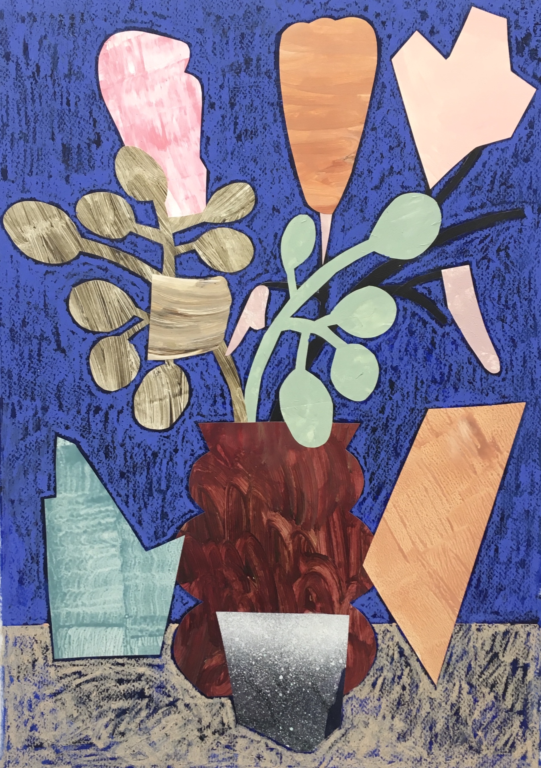 2022, acrylic, oil pastel and collage on paper, framed. 73 x 54 cm.