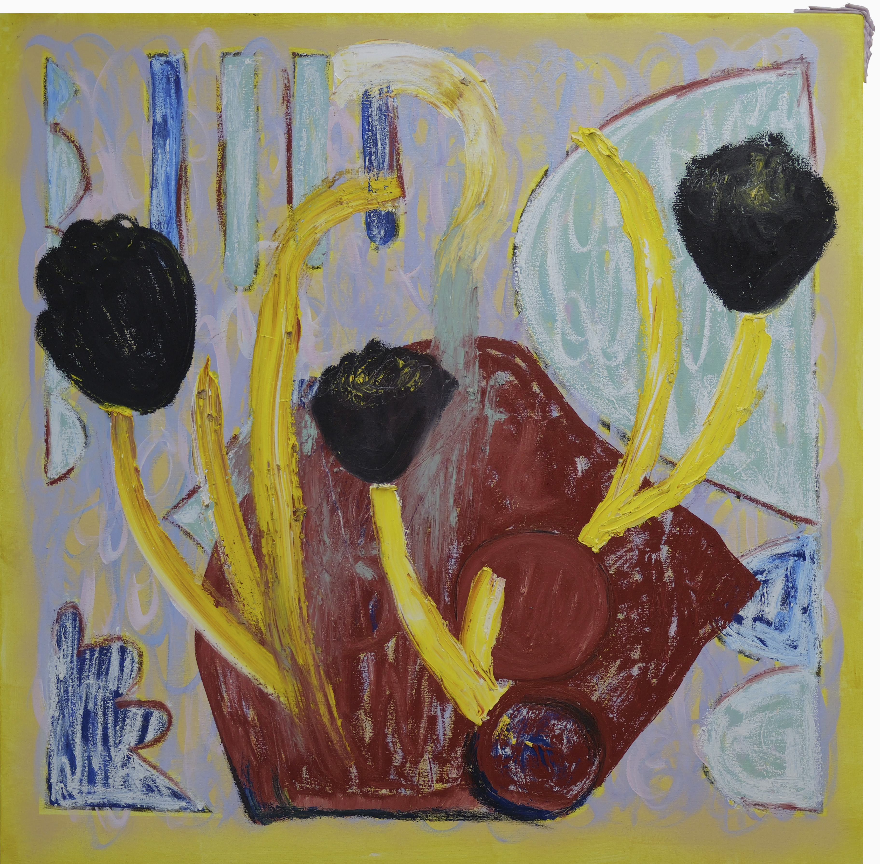 Yellow Mood, Pink Disruption 2022, acrylic, spray, oil and oilstick on canvas/akryyli, spray, öljy ja öljypuikko kankaalle, 90 x 90 cm Tykkää Lataa...