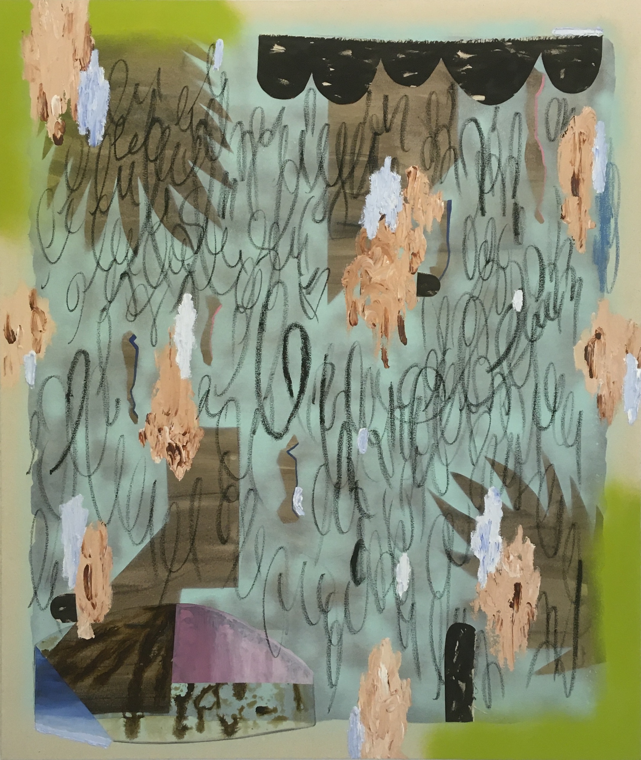 2020, acrylic, spray and collage on canvas/akryyli spray ja kollaasi kankaalle, 130 x 110 cm. Collections of the Finnish State Art Commission/Valtion taideteostoimikunnan kokoelma