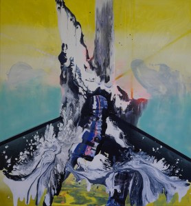 Flood 10 huhtikuun, 201421 elokuun, 2017 | katrinettisivutmononen 2014, Acrylic and spray on canvas/Akryyli ja spray kankaalle, 150 x 140 cm